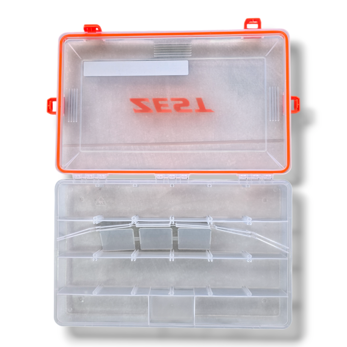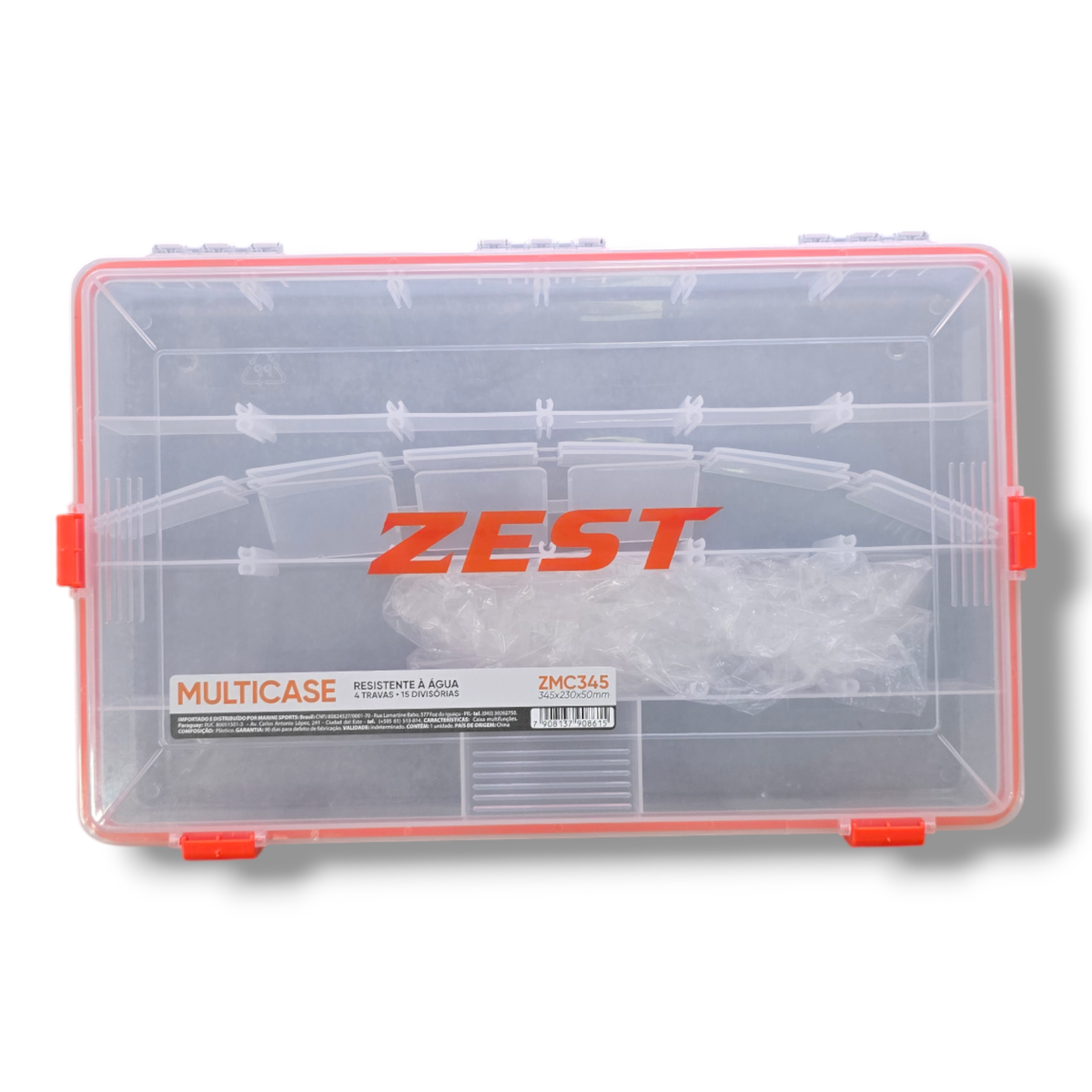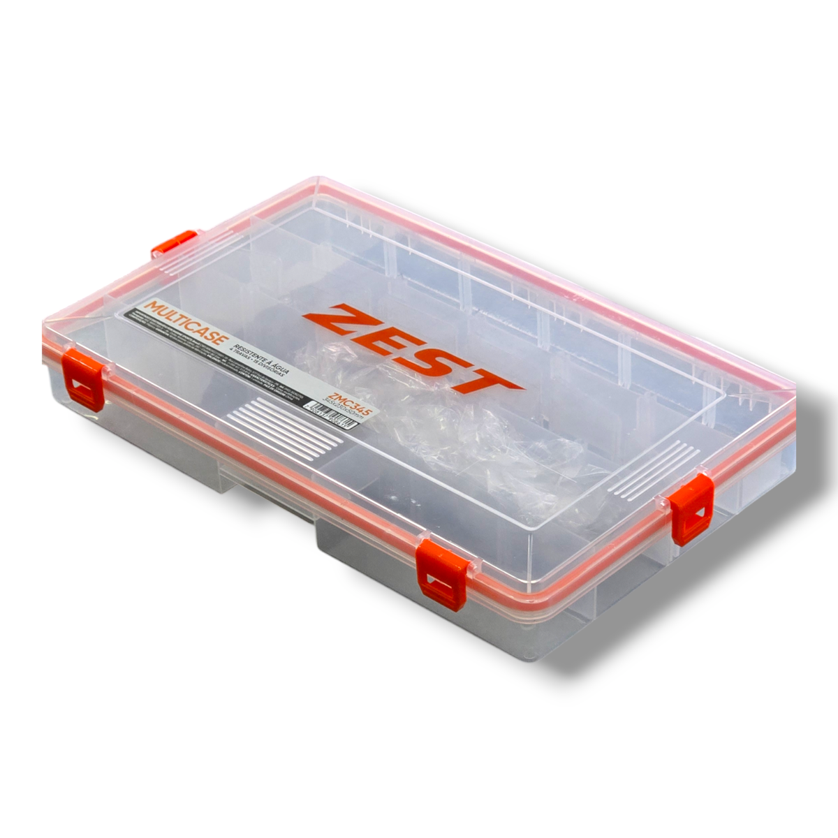 La línea de cajas Multicase de la marca ZEST ofrece una variedad de tamaños, todas diseñadas para ser resistentes al agua. Son ideales para almacenar señuelos y accesorios de pesca de forma segura y práctica.