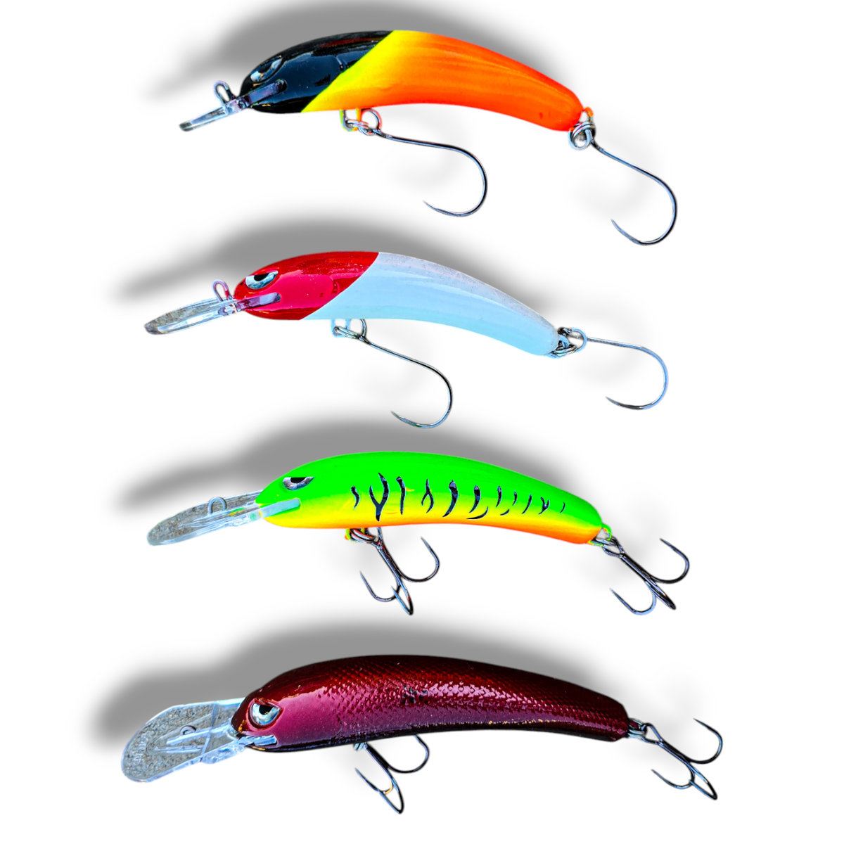 Combo armado con bananas Don KB, ideales para trabajar en distintas profundidades tanto en trolling como baitcasting.