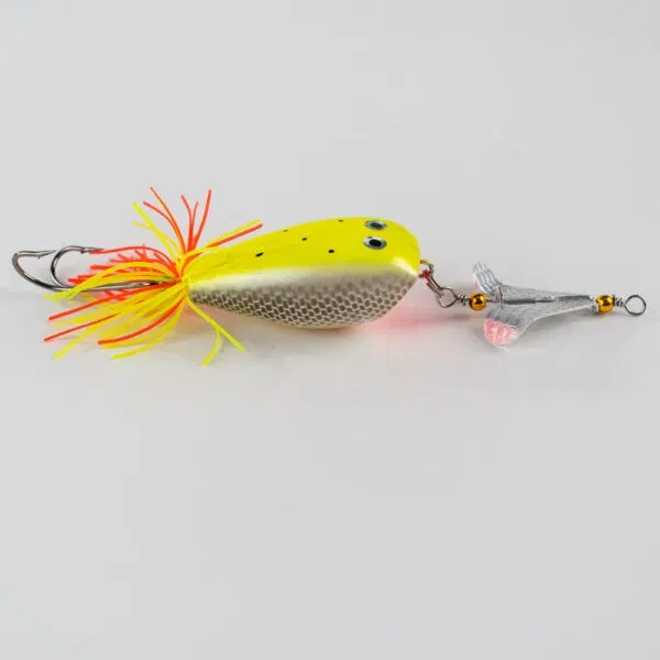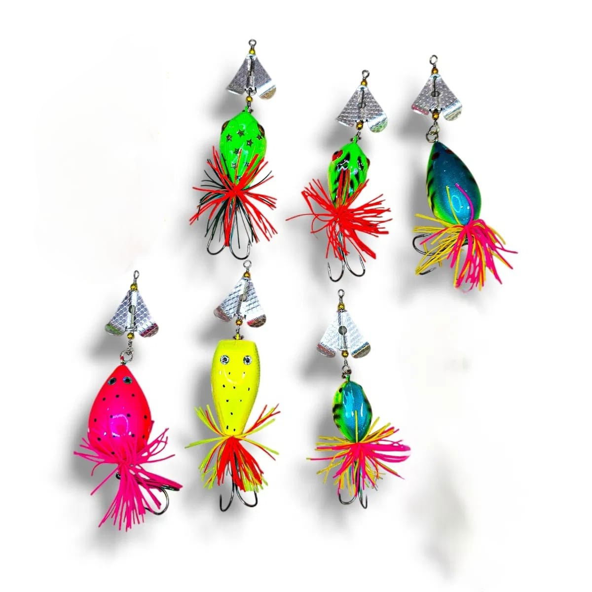 Llevate este combo de 6 ranas rígidas con hélices, diseñadas para generar un movimiento explosivo en superficie y provocar ataques inmediatos de tarariras y dorados.