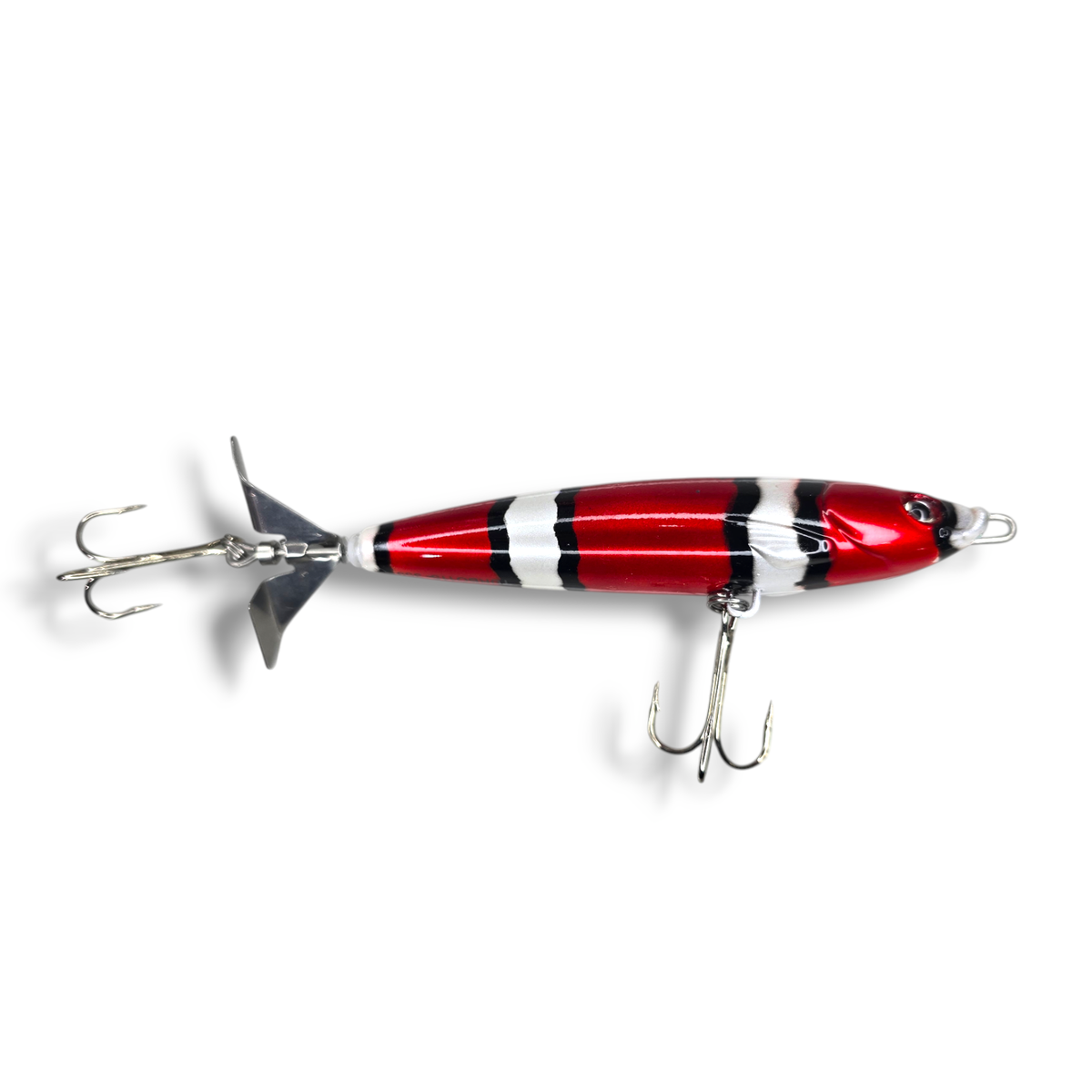 ⚙️ Acción: Movimiento tipo “propbait” con hélice trasera metálica que genera burbujas y vibración