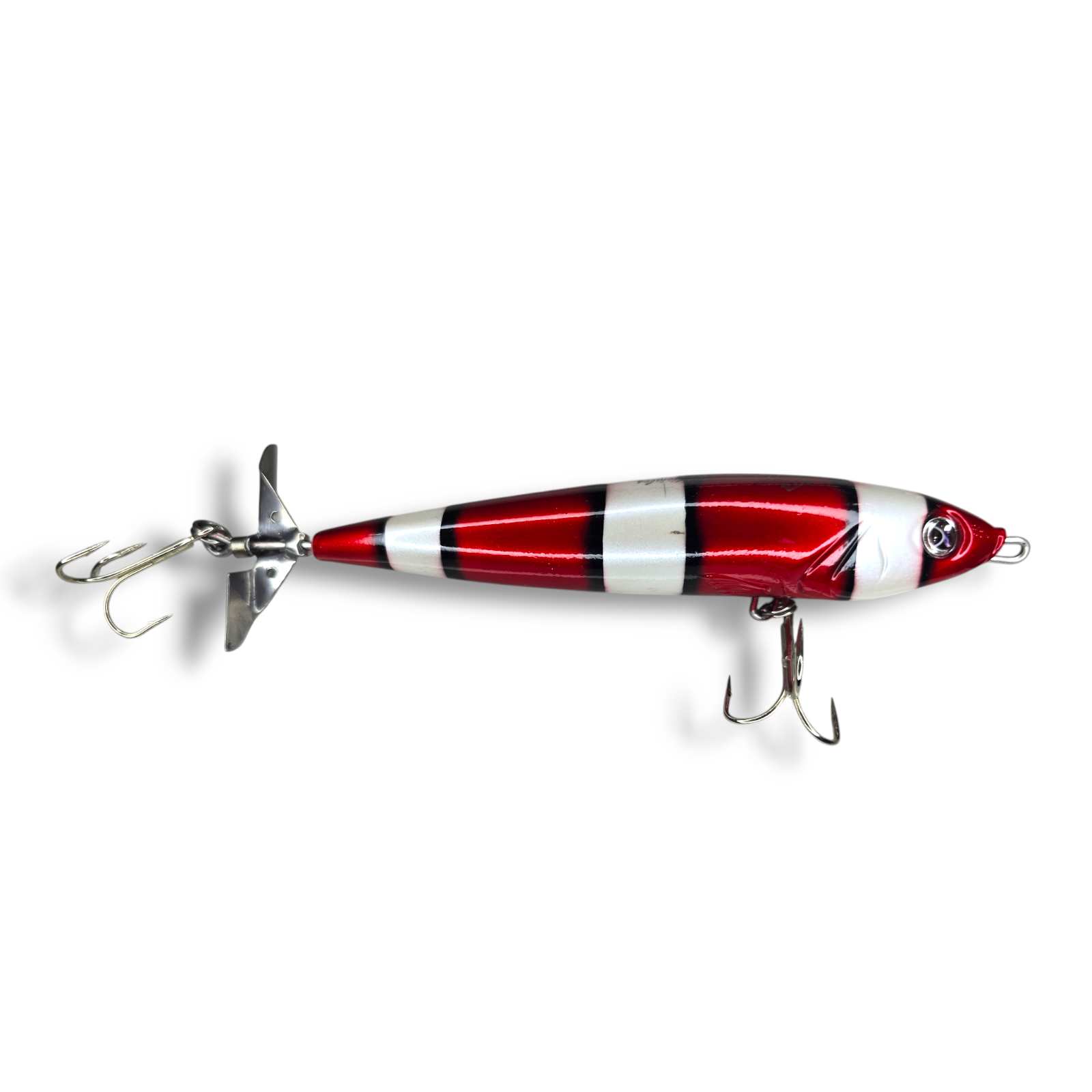 ⚙️ Acción: Movimiento tipo “propbait” con hélice trasera metálica que genera burbujas y vibración
