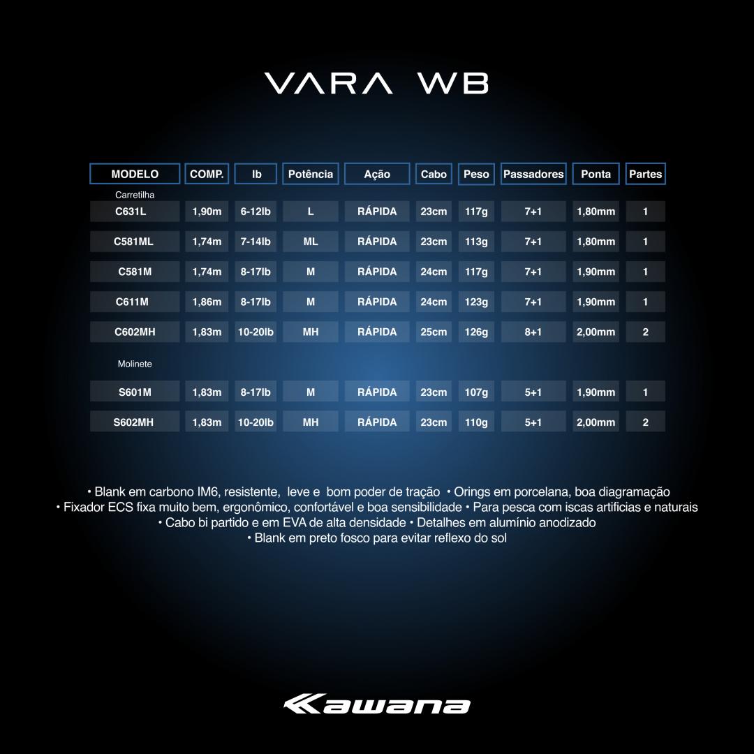 🎣 Modelo: Kawana WB – 2 tramos, 1,83 m, 10-20 lb