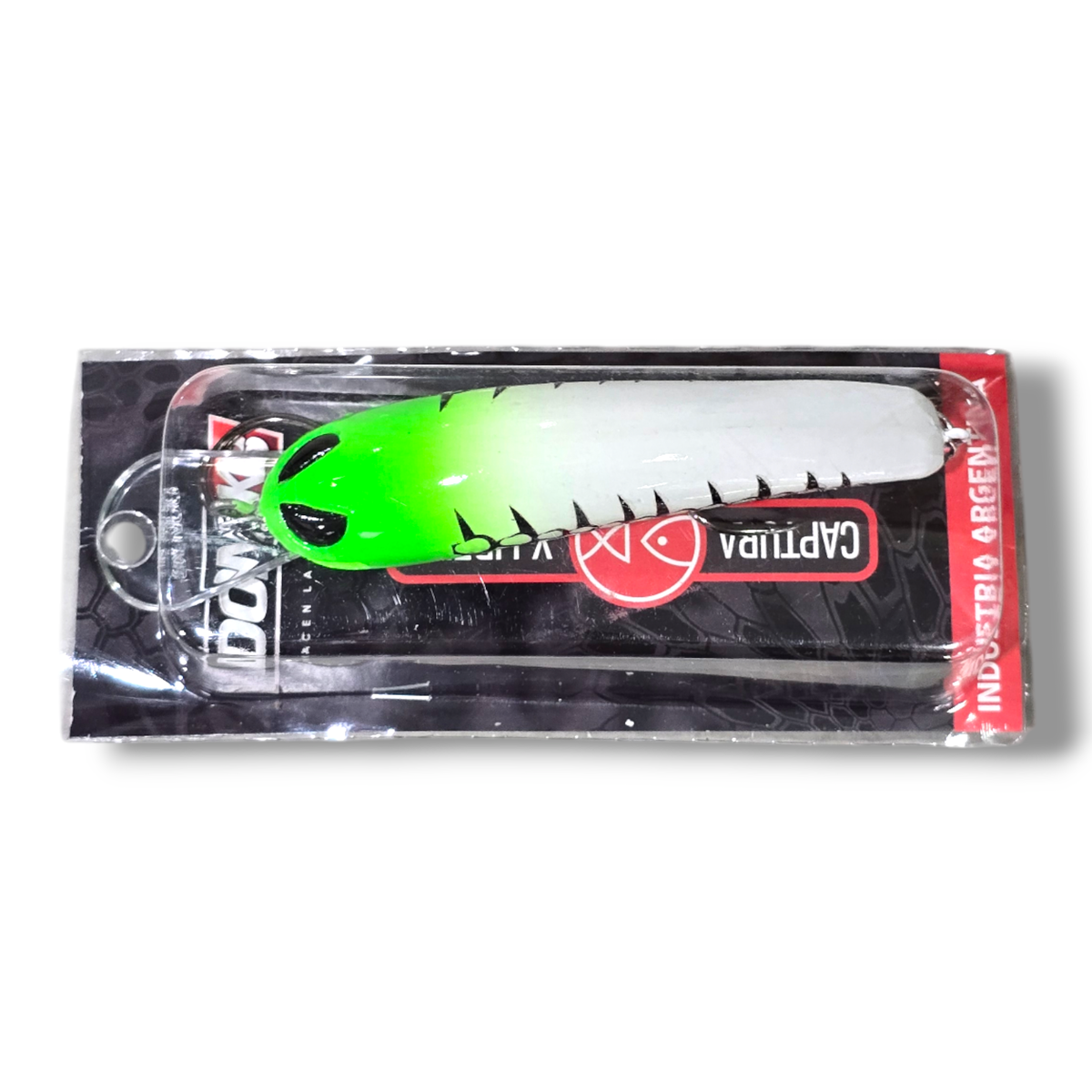 Banana chica de gran movimiento, ideal para la pesca de dorados de cualquier tamaño. La paleta Nº2 permite una profundidad de trabajo de hasta 3 metros aprox., ideal para ríos profundos, correderas y zonas donde el pez se encuentra más abajo. Señuelo muy efectivo y confiable.