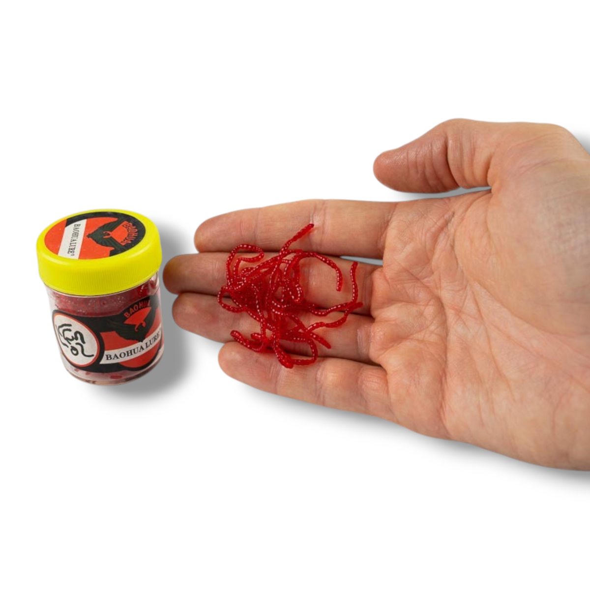 Lombrices artificiales con sabor y olor.Ideales para pesca variada.Presentación: frasco x aproximadamente 100 unidades.