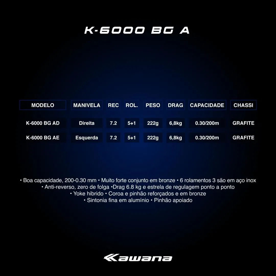 Carretilha KAWANA BG A – Características