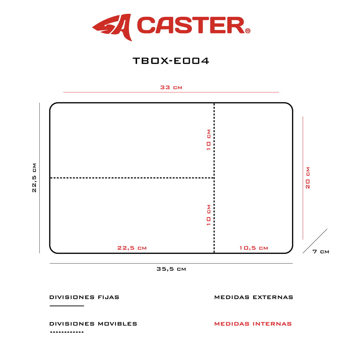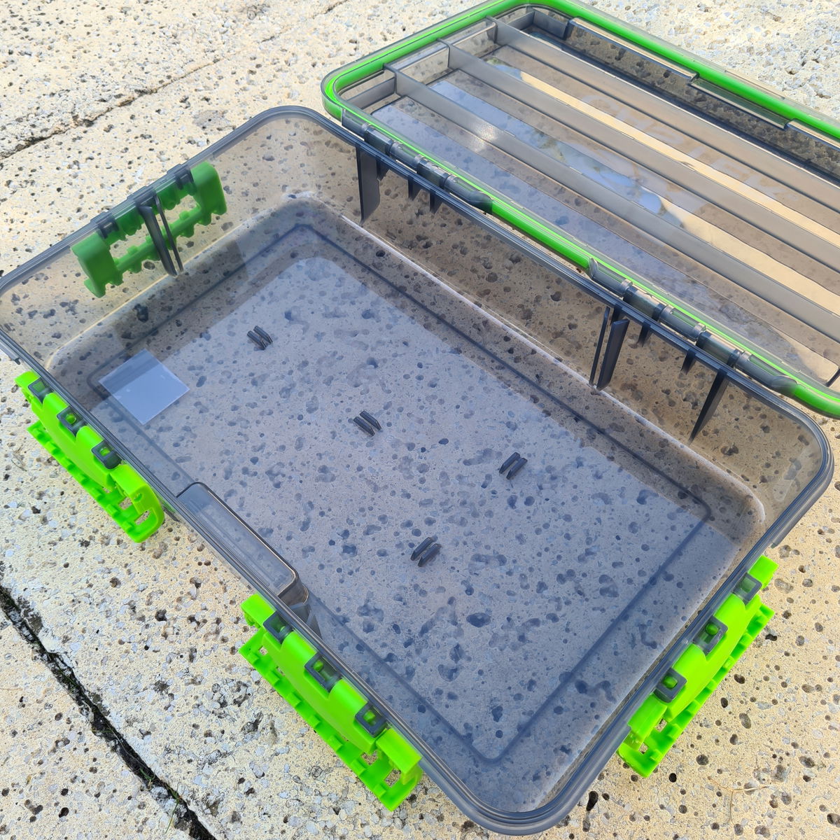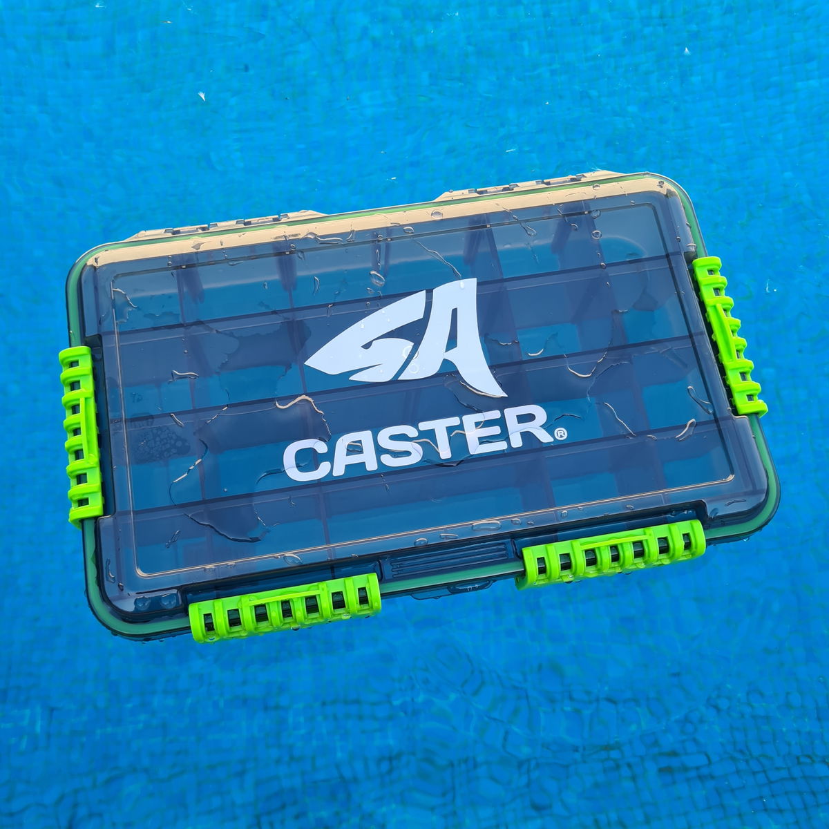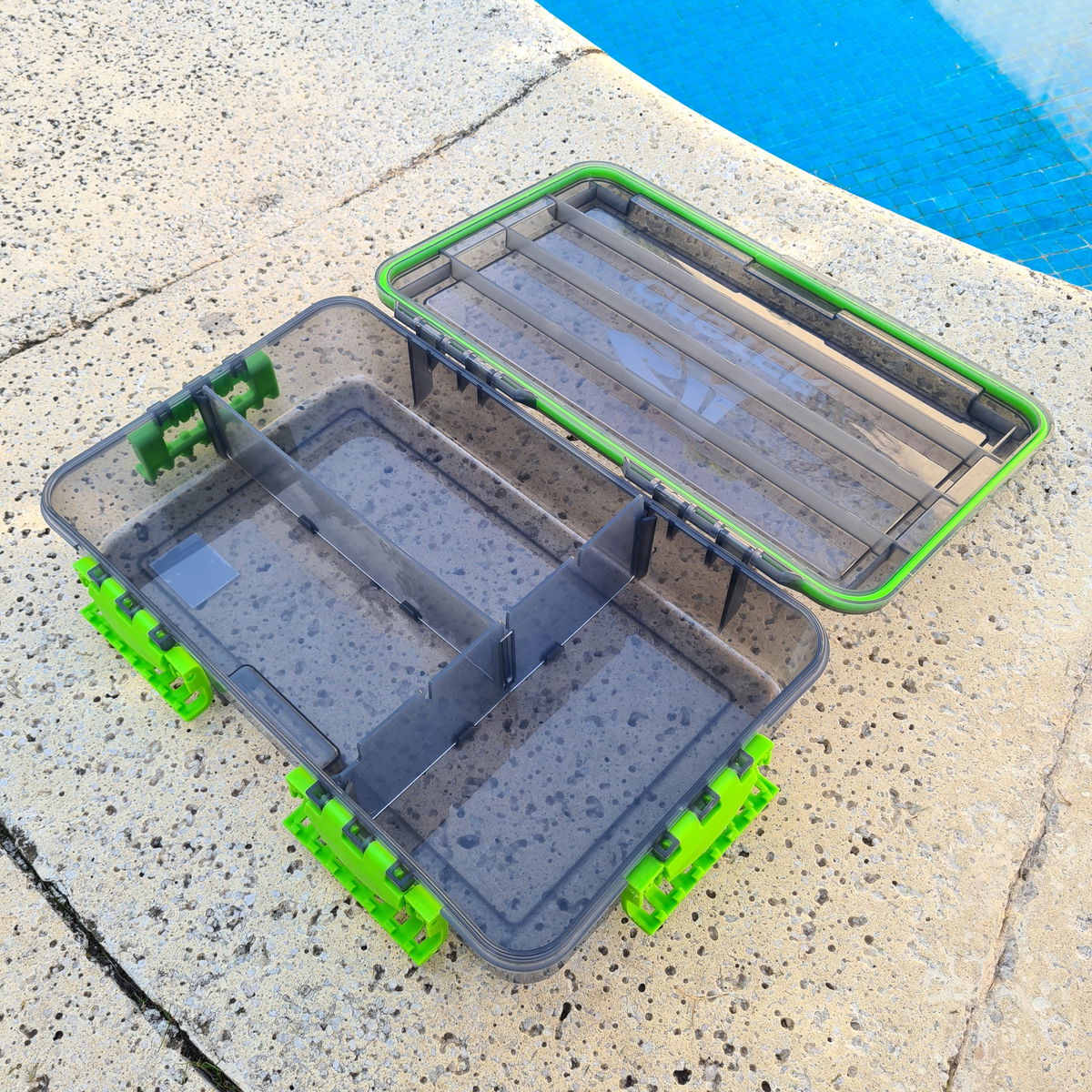 • Los pestillos de alta resistencia permiten la apertura con una sola mano y mantiene sus valiosos señuelos y accesorios seguros y totalmente secos