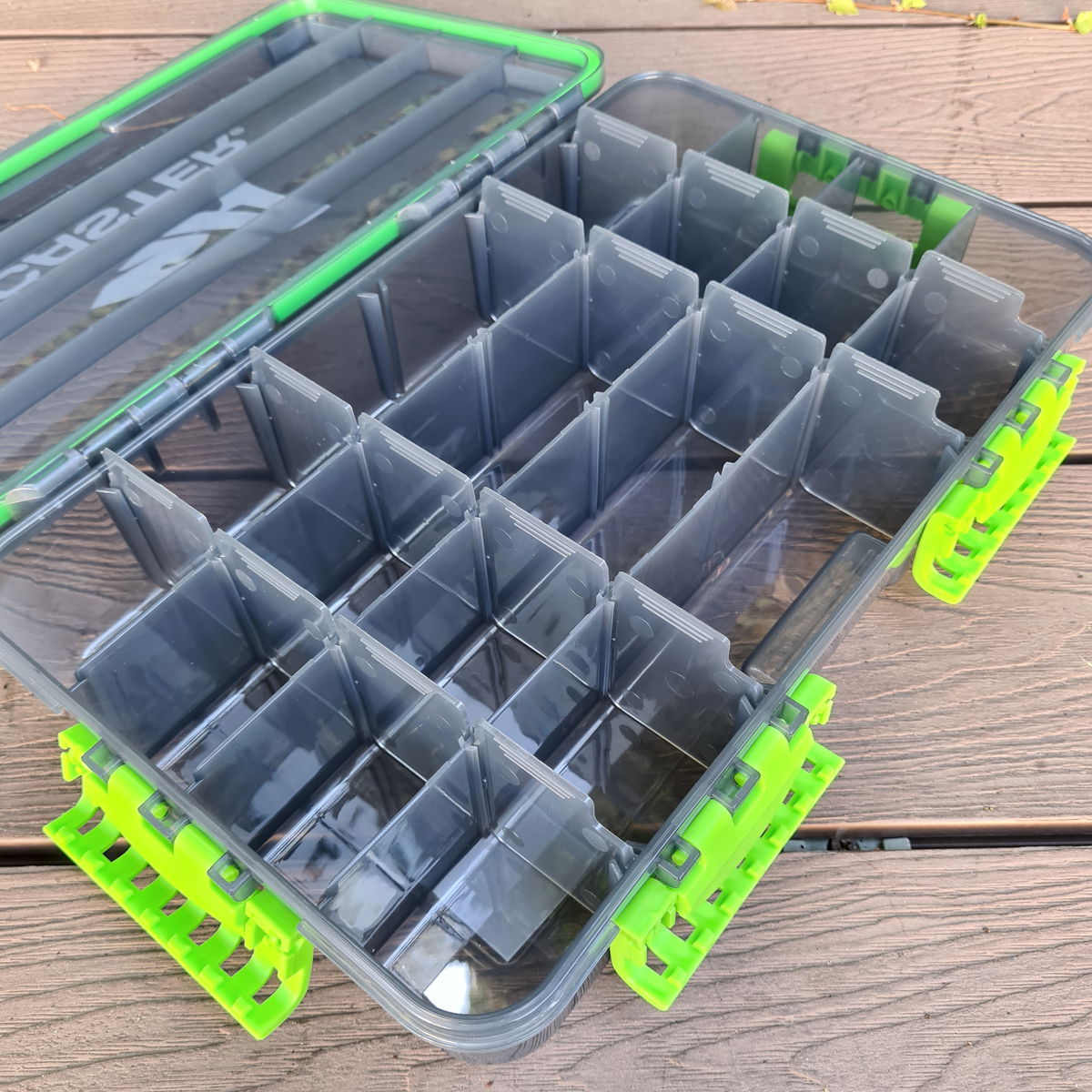 • El color gris humo con el que diseñamos nuestras cajas protege sus señuelos del sol, previniendo que se decoloren y extendiendo su vida útil, manteniendo a su vez un nivel de transparencia adecuado que permita ver los productos en su interior