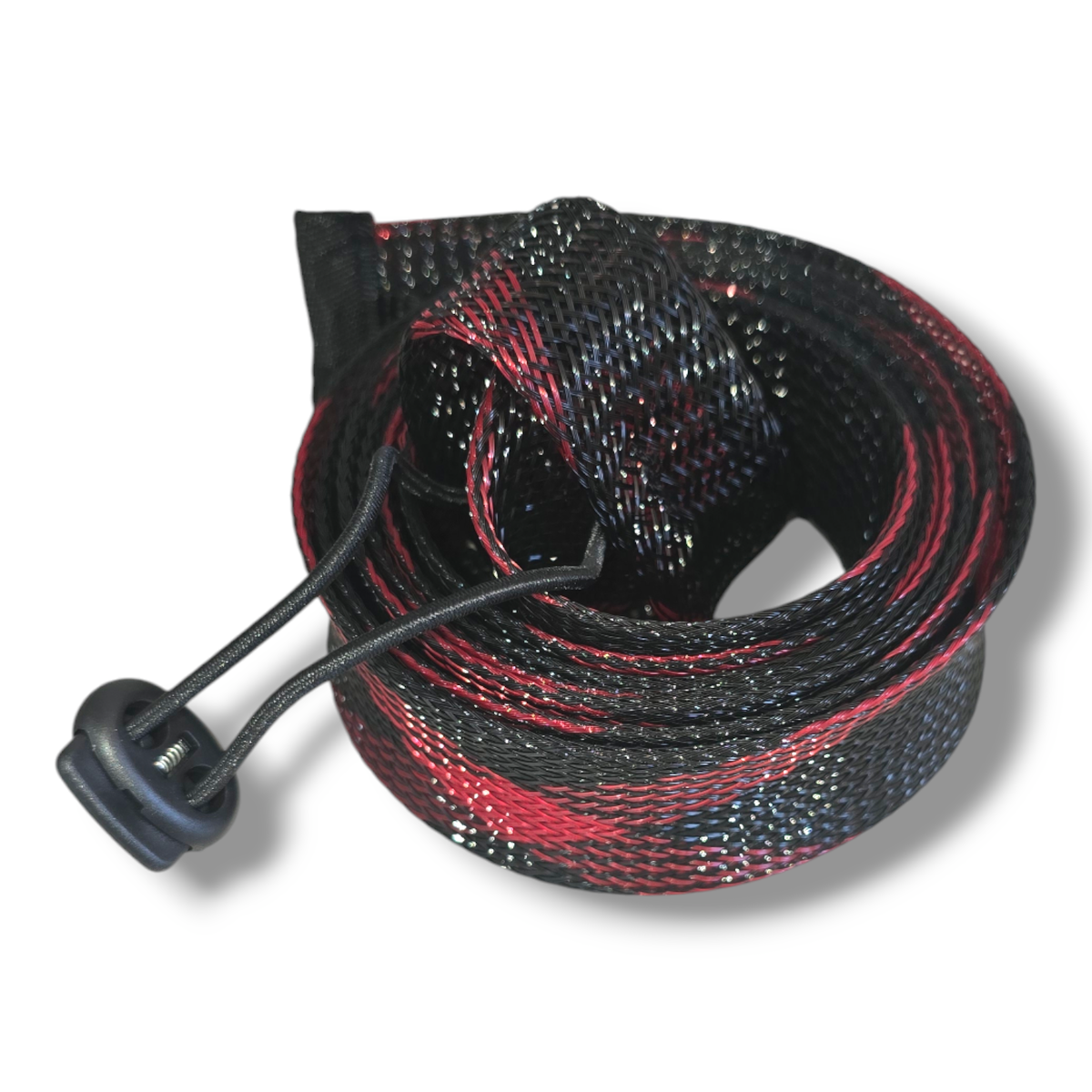 Funda ideal para cubrir cañas y pasa hilos en su traslado. Muchas veces con la funda clásica sola no alcanza para proteger una caña, sobre todo, si es de alta gama. Entonces, estas fundas pasan a ser imprescindibles, ya que envuelven la caña con la presión adecuada desde el final del mango hasta el puntero, es decir, el segmento más delicado. Al abrazarla elásticamente amortiguan los impactos que las fundas convencionales solas no pueden detener. Este modelo cuenta con un elástico en su parte baja para sujetarla al reel.